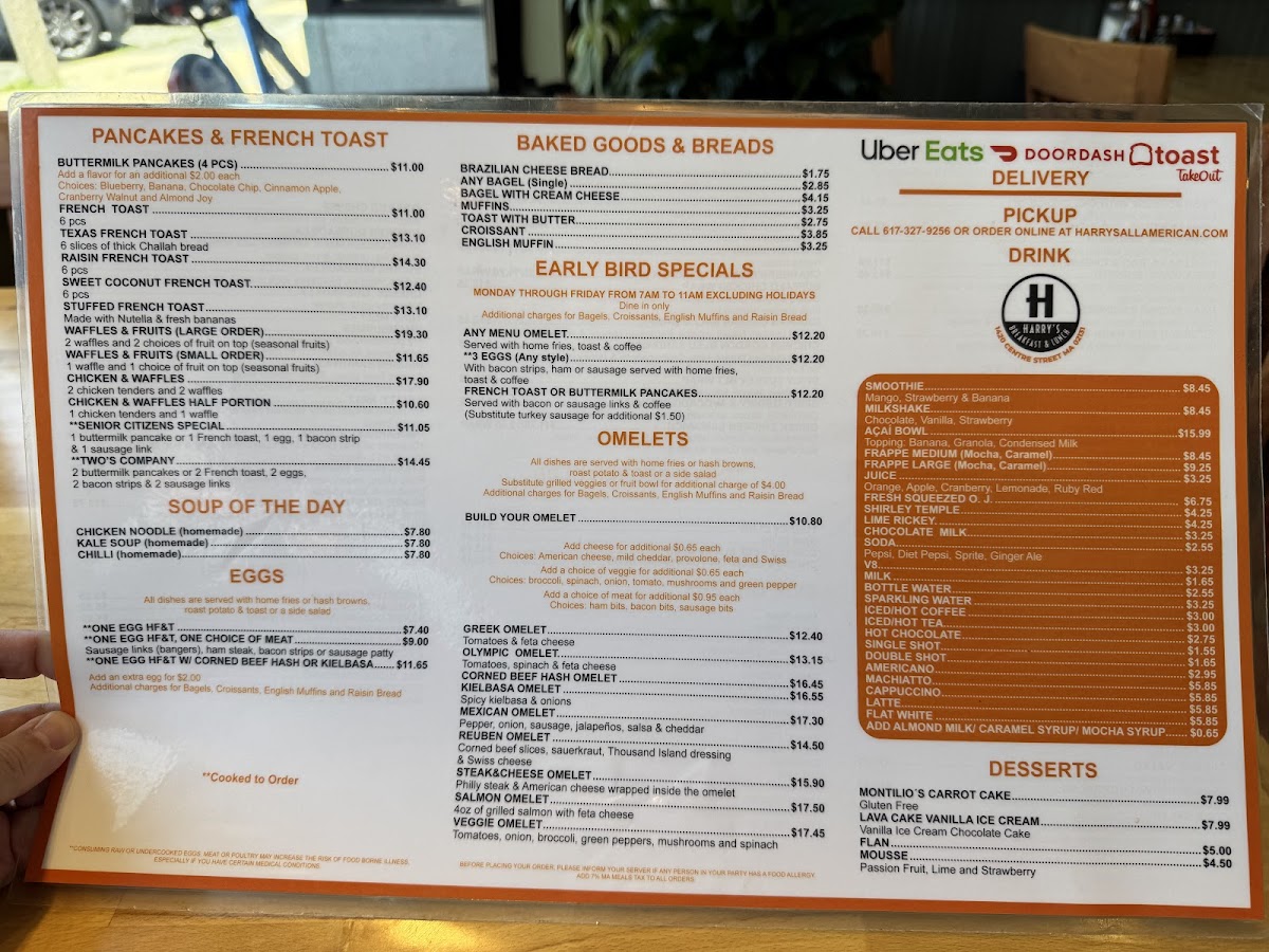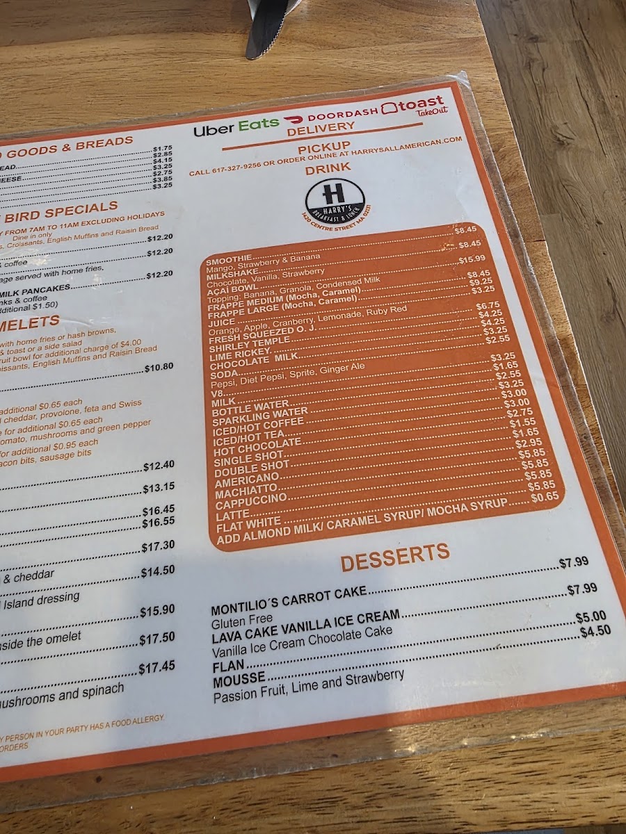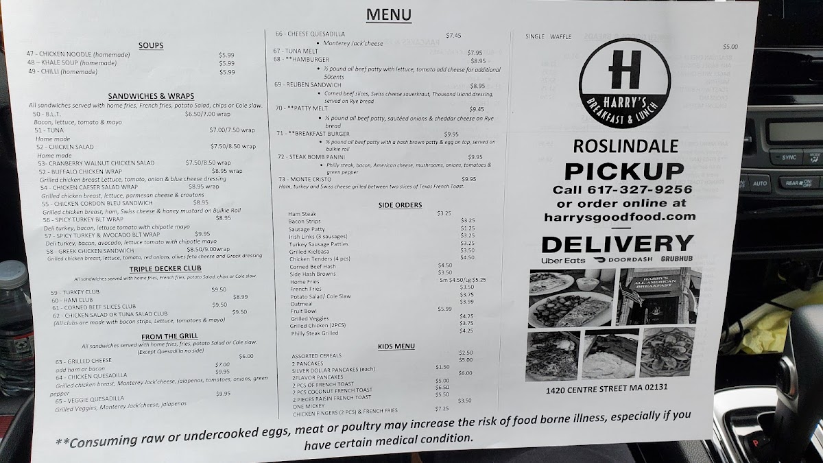 If you’re craving a hearty, classic American breakfast in the heart of Boston, look no further than Harry’S All American Breakfast Restaurant In Boston Menu. Located at 1420 Centre St, this cozy spot serves up everything from fluffy pancakes to sizzling bacon and eggs. Whether you’re stopping by for a quick bite or enjoying a leisurely morning with friends, the menu offers something for every breakfast lover. Dive into delicious omelets, mouthwatering French toast, and freshly brewed coffee, all made with the finest ingredients. You’ll feel right at home with every comforting dish, served up just the way you like it. Each meal at Harry’s is designed to make your morning special, offering a taste of tradition with a warm, welcoming vibe.